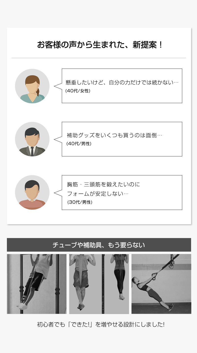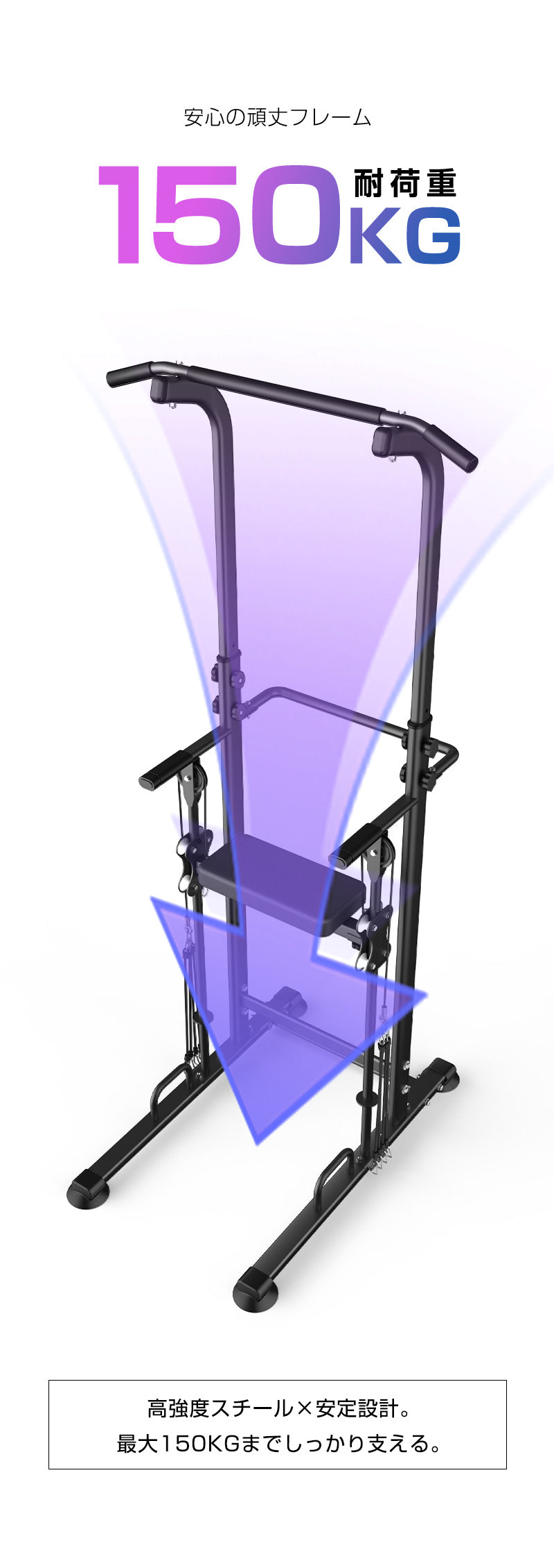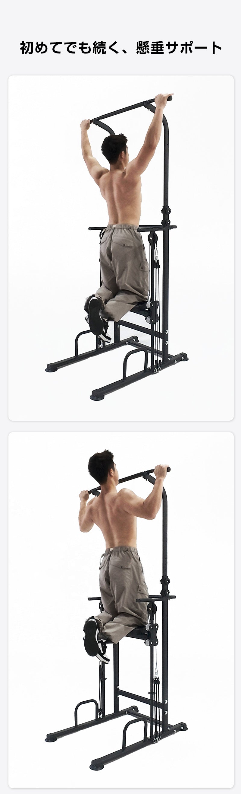 ・1台で3種目:懸垂/ディップス/プッシュアップ対応