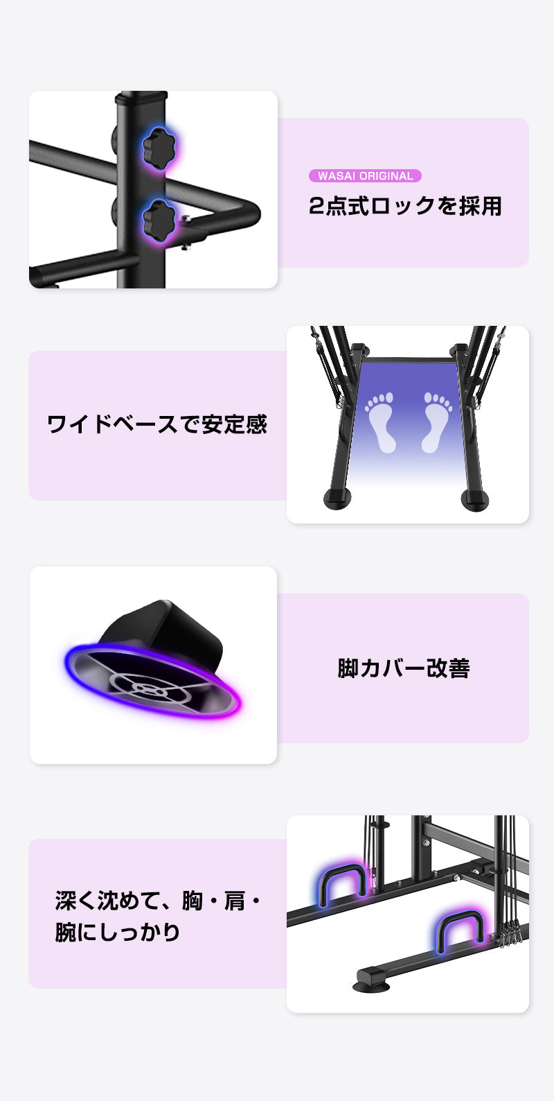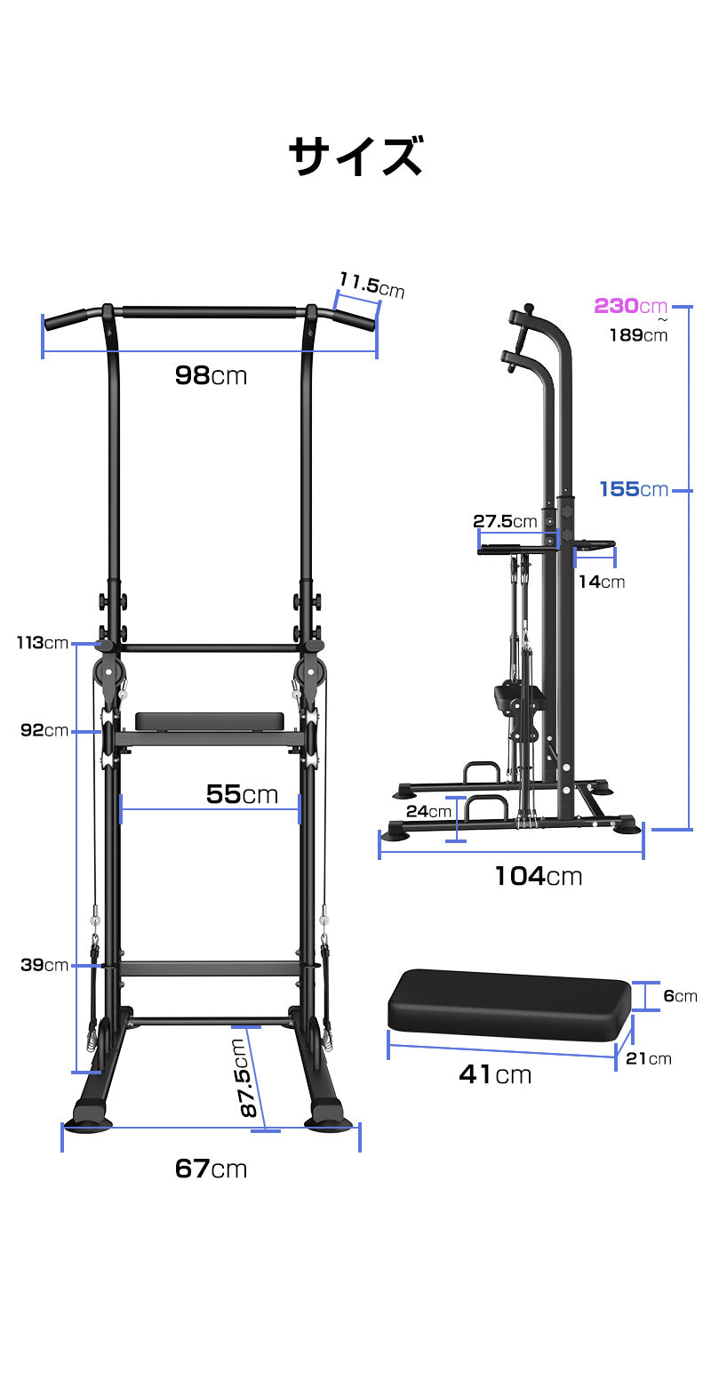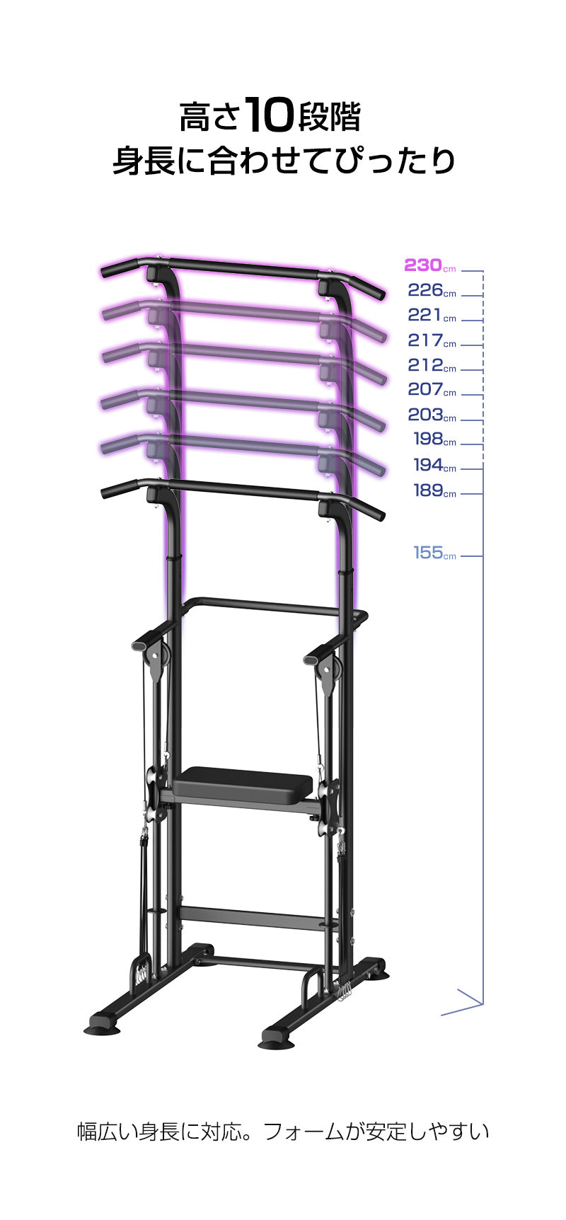 ・1台で3種目:懸垂/ディップス/プッシュアップ対応