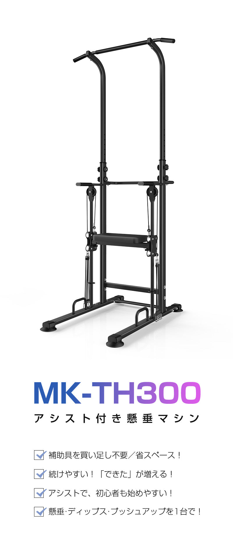MK-TH300は、アシストバンドで“最初の1回”を作り、続けやすさまで設計した懸垂マシンです。