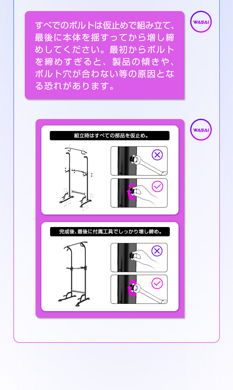 WASAI MK-TH300 アシスト付き懸垂マシン|左右計8本バンドで補助調整・高さ10段階・耐荷重150kg(ディップス/プッシュアップ対応)